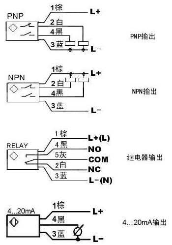 信號輸出:PNP、NPN、繼電器﹑模擬量(4…20mA)1)常開+常閉(SPDT)