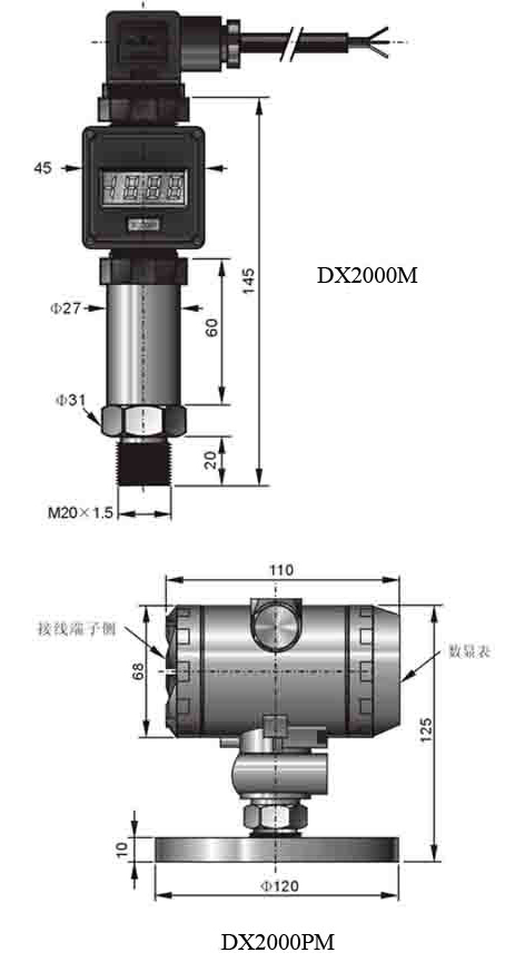 DX2000型工業(yè)壓力變送器應(yīng)用于環(huán)境比較惡劣的露天現(xiàn)場,能夠?qū)崿F(xiàn)零點遷移和量程調(diào)節(jié),廣泛用于石油,化工,冶金,食品制藥等行業(yè)的過程控制和壓力測量,且具有0~100%線性壓力指示表,LED液晶顯示等多種形式可供選擇。DX2000M系列是我公司在DXl000基礎(chǔ)上改進而成,除具有DXl000的一切特點外增加了現(xiàn)場壓力顯示,適用于工作環(huán)境比較惡劣,同時要求現(xiàn)場顯示被測壓力量的場合,分不同量程和使用環(huán)境有多種結(jié)構(gòu)可供選擇。該系列均為對應(yīng)于DX100系列傳感器提供標(biāo)準(zhǔn)化信號輸出的變送器。它是在傳感器基礎(chǔ)上采用先進的信號調(diào)節(jié)模塊而成。其主要特點是三位半LED壓力顯示,同時輸出4~20mA信號。