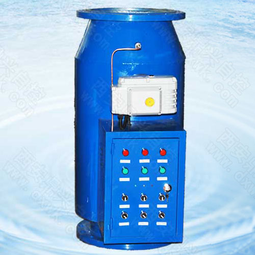 本電子除垢儀正常工作時,排污口所接的排污閥關(guān)閉,蝶閥全開,被處理水經(jīng)過濾網(wǎng)后流出,渣滓等被截留在水處理儀濾網(wǎng)內(nèi)。排污時,關(guān)閉水處理儀下游的閘閥,同時關(guān)閉水處理儀輔機的蝶閥,打開排污閥。此時,被處理水在濾網(wǎng)前段流出,在濾網(wǎng)的后段(渣滓收集段)由外向里沖刷濾網(wǎng)后排污,對濾網(wǎng)有較強的自潔作用。