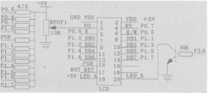 電動閥門控制器的液晶顯示部分設計采用128*64的圖形點陣液晶顯示模塊MCG12864-1。點陣為128*64, 外形尺寸93*70*10mm,視窗尺寸70.7*38.8mm,能顯示各種字符和圖形?膳cCPU直接接口,具有8位標準數(shù)據總線,邏輯工作電壓5V。由于C8051F005的引腳電壓為3.3V, 因此要接上拉電阻。
