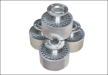 DXX旋轉(zhuǎn)式蒸汽消聲加熱器腔體環(huán)壁上分布著若干組大小通徑配套的小孔,當蒸汽從其中的斜向小孔向外高速噴出時,冷水從每組配套的另一小孔中被引射出來,兩者迅速進行熱交換,由于加熱器中的蒸汽是沿切線方向旋轉(zhuǎn)噴出的,這樣一方面大大減小了蒸汽對被加熱液體的沖擊角度,有效降低了由于蒸汽對液體的沖擊振動而產(chǎn)生的噪聲。另一方面蒸汽沿切線方向旋轉(zhuǎn)噴出,帶動被加熱液體產(chǎn)生同向旋轉(zhuǎn),冷熱對流變得更加頻繁,這個過程使蒸汽汽泡產(chǎn)生的噪聲,被壓到最低限度,且整個容器內(nèi)的液體在旋轉(zhuǎn)運動中被很快加熱。